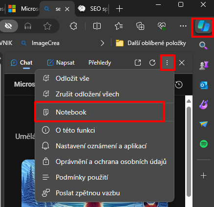 Odkud spustit AI Notebook?Notebook najdete v Copilotu. Nejdřív tedy musíte otevřít boční panel Microsoft Copilot a pak v jeho horním řádku rozkliknout ikonku tří svislých teček A zde odkliknout položku Notebook. Jak spustit Designer Image Editor?