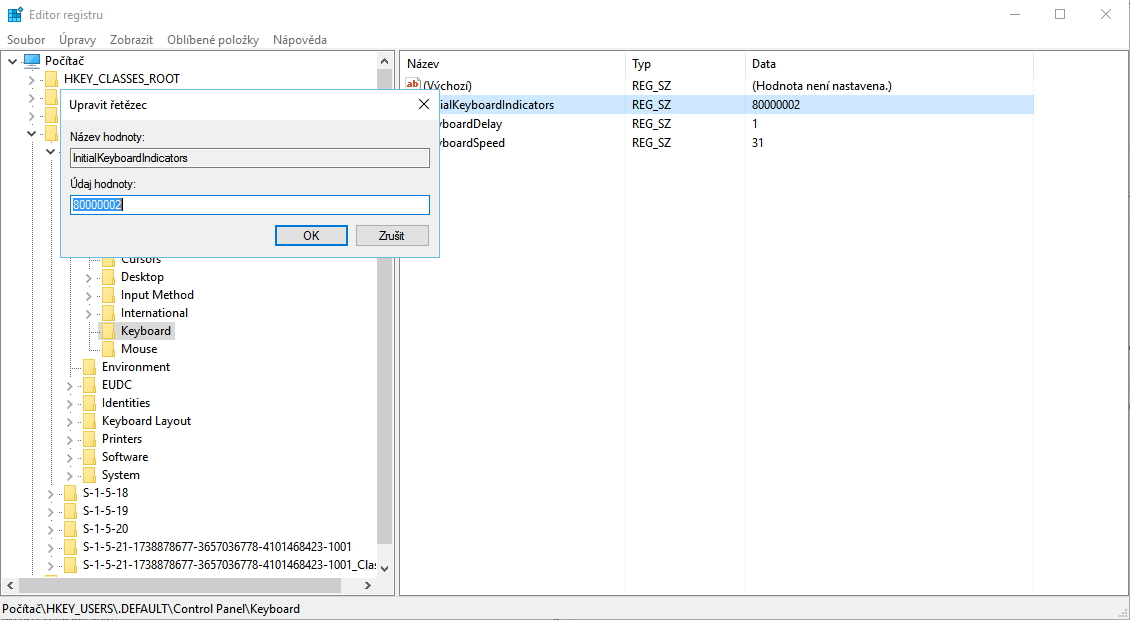 Poté by již měla automatická aktivace numerického bloku fungovat. Pokud ne, doporučuji se vrátit k změnám v BIOS a zkusit nastavit inicializaci NUM LOCKu pro každý uživatelský účet na počítači (od administrátorského účtu počínaje). Veškeré úpravy registru jsou pouze na vlastní nebezpečí.