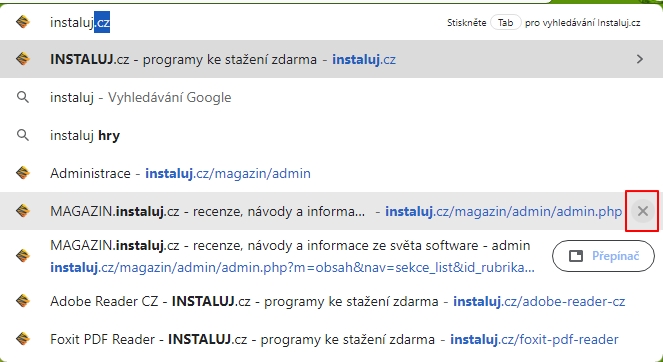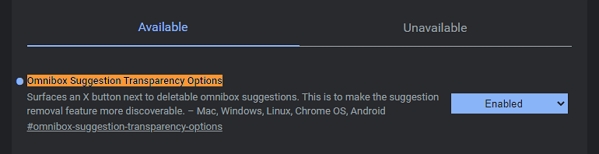 Vedle našeptávaných návrhů Chrome se nyní zobrazí světle šedý křížek vpravo vedle návrhu, který uživateli umožňuje daný návrh zcela odstranit z našeptávání. Nicméně nelze takto odstranit všechny návrhy, což by uživatel spíše očekával - a to bez nastavování funkcionality v pokročilých nastaveních Chrome.