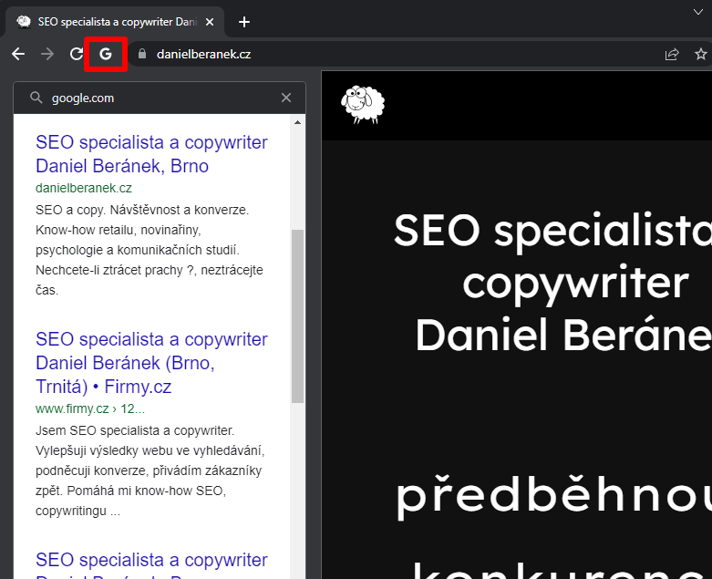 Po prokliknutí se z vyhledávání Googlu na web, se v prohlížeči vlevo od adresního řádku objeví ikona G. Její odkliknutí zobrazí právě provedené vyhledávání na Googlu. A co víc: můžete odklikávat další výsledky, a tak postupně projít všechny výsledky konkrétního hledání, aniž byste se museli vracet na Google. Zdroje