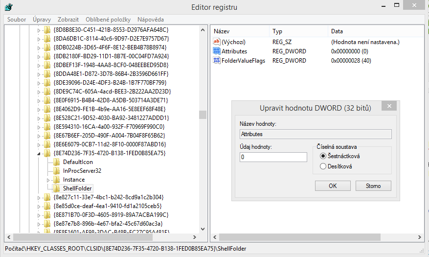 Nyní máte v Editoru registru povolenou editaci příslušného registru: