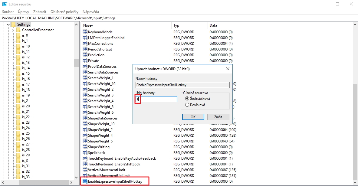 Finta je, že středník na anglické klávesnici se skrývá jinde než na české (typicky odpovídá klávesa dlouhé kroužkované ů), proto je vhodnější použít zkratku s tečkou, jejíž umístění je stejné na anglické i české klávesnici. Toto řešení je ovšem polovičaté, neboť budete muset neustále přepínat mezi oběma rozloženími. Lepší je zprovoznit spuštění emoji panelu i na české klávesnici pomocí úpravy systémového registru. Emoji panel na české klávesnici - úprava registru