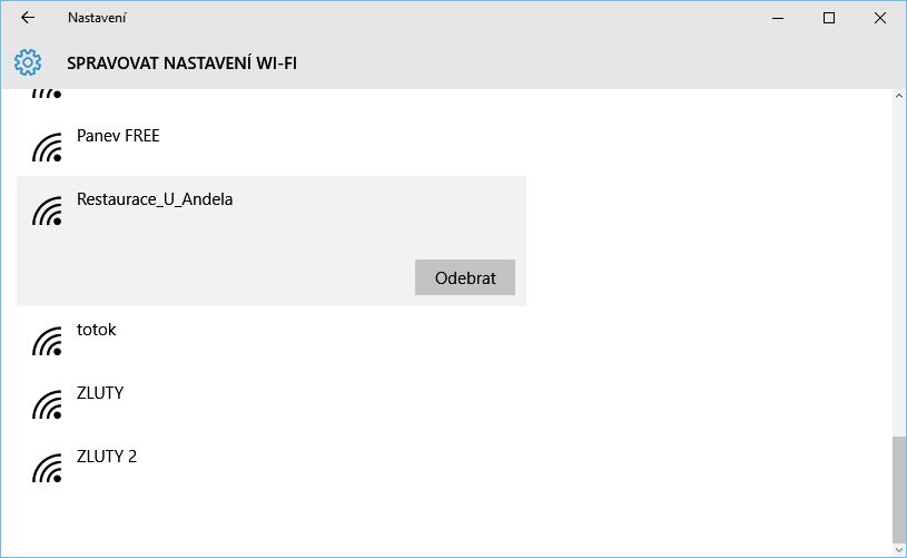 Jak vymazat uložené Wi-Fi sítě z Windows 10?Windows 10 stejně jako spousta jiných systémů ukládá názvy připojených Wi-Fi sítí, případně i autentizační údaje s danými sítěmi spojenými. Ne vždy vám musí vyhovovat, že je tento seznam síti k dispozici - nejméně když máte uloženou nejen síť a její přístupové údaje, navíc i položku Připojovat automaticky. Třeba když se jednou připojíte v taxíku a od té doby má počítač nutkání připojovat k téže síti pokaždé, když projede kolem. Proto můžeme tyto sítě promazat - po jedné, nebo všechny naráz...