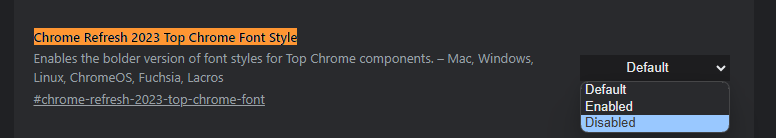 Pokud budete chtít později změnu zvrátit, navigujte zpět do experimentálních nastavení k položce Chrome Refresh 2023 Top Chrome Font Style a zvolte buď možnost Default, při níž volbu provede prohlížeč, nebo vynucené použití nového stylu možnosti Enabled. Zdroje