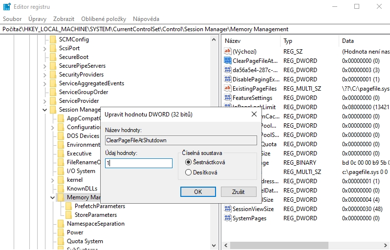 Vyprázdnění stránkovacího souboru editací systémového registruKonfigurace vyprázdnění stránkovacího souboru se nejsnadněji provede na všech edicích Windows pomocí úpravy systémového registru. Stačí jen když: