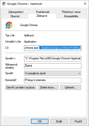 Tímto způsobem pak budou veškeré instance Chromu spouštěny bez nové, úsporné fičurky. Což ovšem nemusí být ideální, pokud přeci jen Chrome používáte, i když PC jede na baterku. V tom případě si můžete vytvořit zástupce, který určí chování fičurky v Chromu: