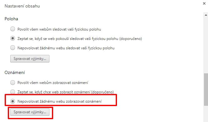 Pokud chceme zachovat zobrazování push notifikací z konkrétních webů: