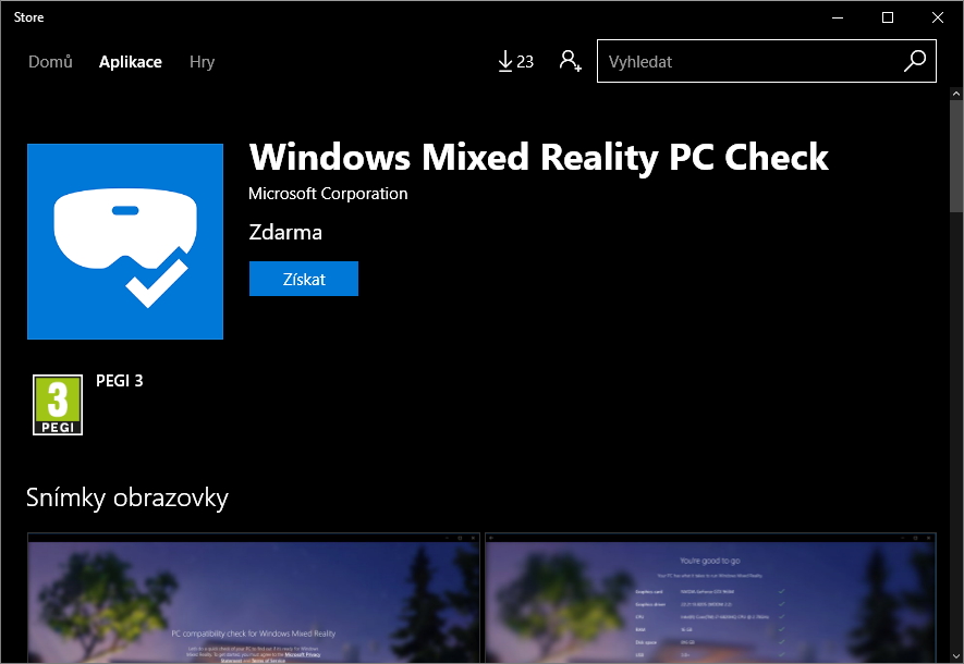 Pokud se vám nechce procházet jednotlivé požadavky a zjišťovat, jaké parametry vlastně vaše železo má, pak je tu aplikace, která vše projde za vás. Jmenuje se Windows Mixed Reality PC Check a najdete ji ve Windows Store. Windows Mixed Reality PC Check stačí nainstalovat, spustit, odsouhlasit Microsoft Privacy Statement a Terms of Service. Aplikace sama projde specifikace hardwaru, srovná je s požadavky Mixed Reality a vyhodí v podobě přehledného seznamu splněných a nesplněných nároků.