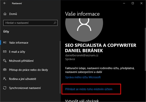 Jak změnit Microsoft účet na místní účet ve Windows 10?Účet Microsoft unifikuje přístup k uživatelské identitě mezi různými zařízeními, instancemi operačního systému Windows i na úrovni aplikací, které s identitou uživatelského účtu pracují, jako jsou například Microsoft Office. Nevýhodou účtu Microsoft je, že se nemůžete do systému přihlásit nezabezpečeně bez použití hesla. A proto se šikne návod, jak přepnout účet Microsoft na účet místní.