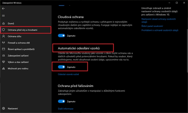 Windows Defender odesílá vzorky zkoumaného kódu zpět na Microsoft v rámci sledování celosvětového vývoje hrozeb a jejich včasné identifikace. Odesílaná data dle Microsoftu neobsahují žádná osobní data uživatele či informace, které by jakýmkoliv způsobem mohla vést k jeho jedinečné identifikaci. Přesto se vám odesílání vzorků nemusí z vícero důvodů zamlouvat. Jak vypnout automatické odesílání vzorků Zabezpečení Windows?