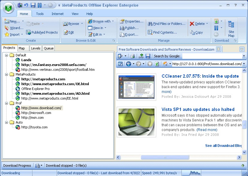 Offline Explorer, stahování a prohlížení oblíbených webů KE STAŽENÍVelmi šikovný prográmek s názvem Offline Explorer, jak již název napovídá, vám umožní stažení oblíbených webových stránek a po odpojení jejich prohlížení offline. Program je vhodný zejména pro uživatele, kteří využívají mobilní připojení k internetu na cestách například. Ve chvíli, kdy je dostupný signál se vám vaše stránky načtou a poté jejich prohlížení bude možné, i když už nebudete připojeni k internetu. Chytré.