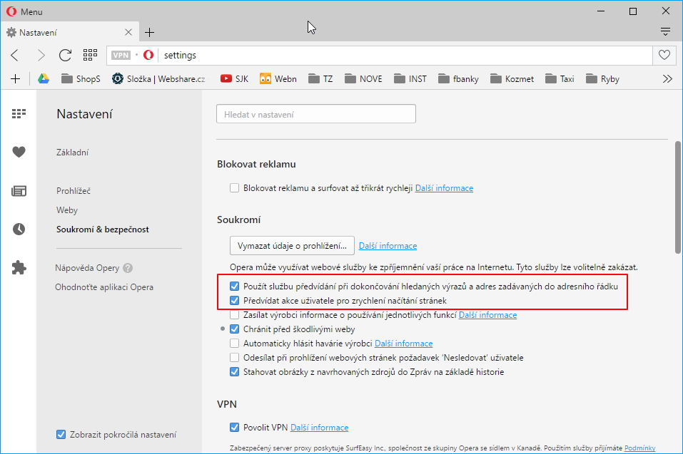 Dopady funkce přednačítání komentuje Daniel Bratell, vývojář Opery: „Od přednačítání očekáváme v průměru o jednu sekundu rychlejší načtení webu. Což vyústí v to, že okamžité načtení webu bude mnohem běžnější než nyní. Samozřejmě ovšem záleží na tom, jak moc je uživatel předvídatelný a jak rychle píše.“ Přednačítání extenzivně využívá systémové prostředky a přenosovou kapacitu. Proto je také defaultně vypnuta v režimu úspory baterie. A proto je i vhodné vypnout i tam, kde využíváme omezené FUP. Najdeme ho pod Nastavení - Soukromí a bezpečnost - Soukromí, položky Použít službu předvídání při dokončování hledaných výrazů a adres zadávaných do adresního řádku a Předvídat akce uživatele pro zrychlení načítání stránek. Funkce address bar speculative prerenderer de facto vychází z předpovídání vyhledávacích dotazů a URL adres, které se nachází ve zdrojovém Chromiu. O předpovědích funkce se můžeme stejně tak přesvědčit i v Google Chrome pomocí příkazu chrome://predictors/. A v různé míře ji už nyní využívají všechny prohlížeče postavené na Chromiu. Zdroje: Opera blogs, Opera blogs
