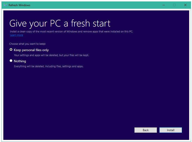 Refresh Windows umožní uživateli načisto přeinstalovat systém aktuální verzí Windows 10. Krom osobních souborů zmizí vše, co není Desítkám vlastní: aplikace, nastavení, soubory uložené mimo osobní složky. Čistá přeinstalace Refresh Windows bude účinnější než obnovení do továrního nastavení, neboť podobu továrního nastavení určuje výrobce zařízení, na němž je systém nainstalován (takže mnohdy obsahuje aplikace, které uživatele vnímá pouze jako bloatware). Implementaci vysvětluje Dona Sarkar, nová vedoucí Insider Program: „Dostávali jsme často reakce od těch, kteří se snažili provést čistou instalaci Windows, ve smyslu, že může být velmi obtížná. Abychom vám s tímto pomohli, implementuje nový nástroj, jehož pomocí bude vytvoření čisté instalace Windows jednoduché a prosté. Nástroj je dostupný v Nastaveních. Nainstaluje vám čistou kopii nejnovější verze Windows 10 a odinstaluje všechny ostatní aplikace.“ Funkce je již obsažena v náhledu pro insidery č. 14367. Použití Refresh Windows je podmíněno pouze internetovým připojením, dostatečně velkým datovým prostorem (3 GB) a platnou verzí Windows 10. Záloha všech dat kromě osobní složky je pouze na uživateli. Zdroje: Microsoft Community, Neowin.net