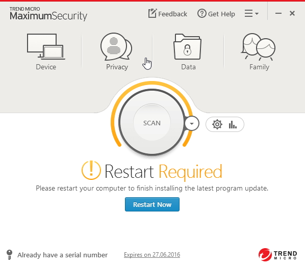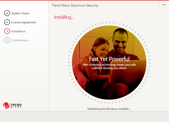 Instalační soubor si velmi rychle natahá data z evidentně nepřetížených serverů společnost Trend Micro. Zkontroluje nastavení systému, nechá si odsouhlasit licenční podmínky a pustit se do instalace samé. Ta je hotová do 4 - 5 minutek. Jediné, co zarazí, je ofrklost softwaru: neptá se na uživatelovo přání ohledně umístění programu či přidání rozšíření Trend Micro Toolbar do prohlížečů. Jen ještě nabídne možnost zasílání nepostradatelných novinek a nabídek na uživatelův mail.... Po obligátním restartu překvapí délka nastartování aplikace - trvá jí to 2 - 3 minutky. Společnost Trend Micro je zakořeněna spíše na americkém kontinentě, proto bychom češtinu v rozhraní očekávali marně. Vizuálně ústředním prvkem výchozí obrazovky je antivirový Scan. Scan