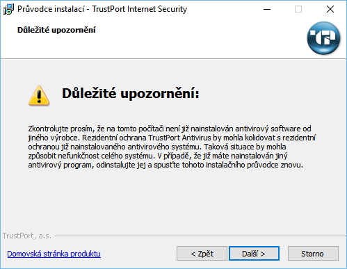 TrustPort Internet Security již při instalaci potěší češtinou. Instalace sama je prostá: