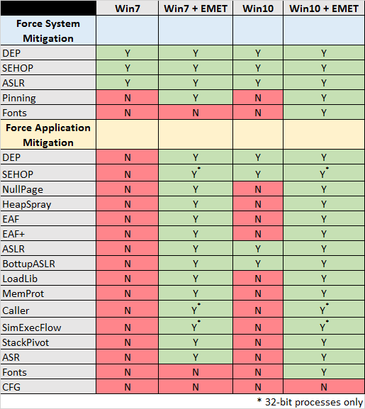 To ovšem nesouhlasí se závěry týmu kyberbezpečnostní připravenosti US-CERT, spadajícího pod americké Ministerstvo vnitra. Will Dormann, člen toho týmu, říká, že „Windows 10 nejsou schopna nabídnout nadstandardní ochranné prvky, které poskytuje EMET. Nasazení EMET má stále své opodstatnění v boji proti zneužívání bezpečnostním slabin systému.“ Škálu hrozeb, kterým je s pomocí nástroje EMET možno zamezit, vizualizuje v následující tabulce. Jak je vidět, je nasazení EMET z hlediska bezpečnosti, zcela klíčové. Také se ukazuje, že nejnovější Windows 10 bez EMET jsou mnohem zranitelnější oproti starším Windows 7 s tímto nástrojem. Dormann akcentuje především širokou škálu ochran, které EMET poskytuje systému: