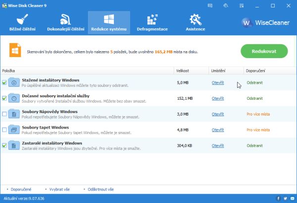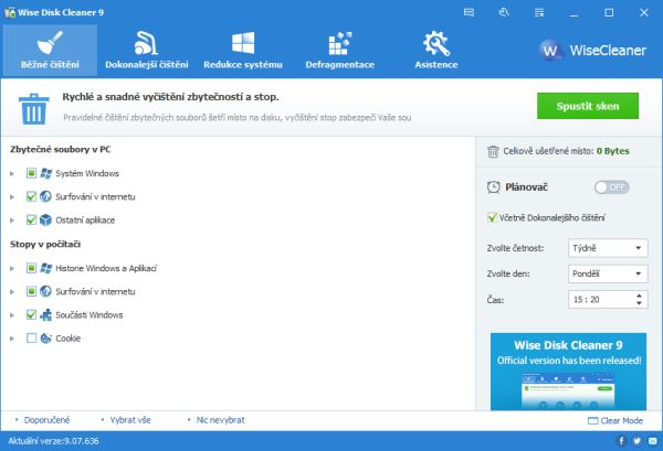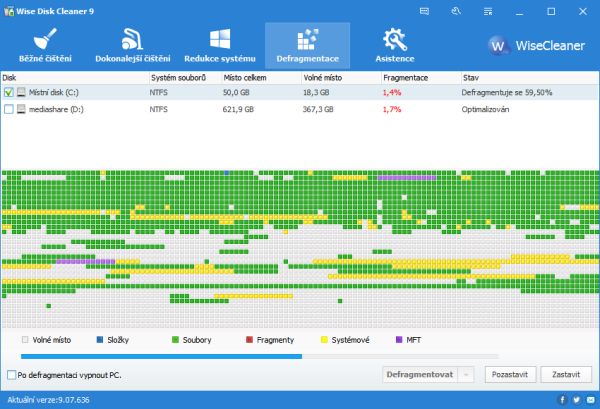 Wise Disk Cleaner souhrnemWise Disk Cleaner je povedená aplikace. Má přehledné rozhraní, komunikuje s námi česky, nabízí široké možnosti čištění nepotřebných souborů a defragmentace disku. Její nároky jsou minimální a výsledky solidní. Spustíme ji na jakýchkoliv Windows od verze XP výše, Pentiu tikajícím od 233 MHz výše s 128 MB RAM. Pozitiva Wise Disk Cleaner