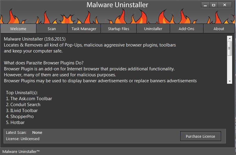 Malware Uninstaller je ideální nástroj, který vás zbaví otravných, zbytečných a hlavně škodlivých programů z počítače. Jedná se o agresivní pluginy do internetových prohlížečů, toolbary (nástrojové lišty) a popu-upy, které díky tomuto nástroji jednoduše odinstalujete.