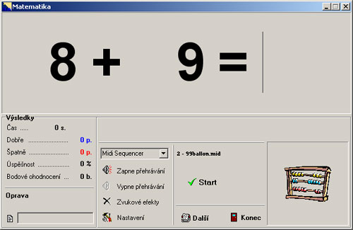 V programu si můžete nastavit sčítání, odčítání, násobení, dělení, počítání s nulou i bez, rozsah počítaných čísel, míchání operandů, generovaní příkladů jen s kladným výsledkem, vygenerovaní příkladů s možnou editací a tiskem, hudba, zvukové i grafické efekty, zobrazení chybových příkladů atd.