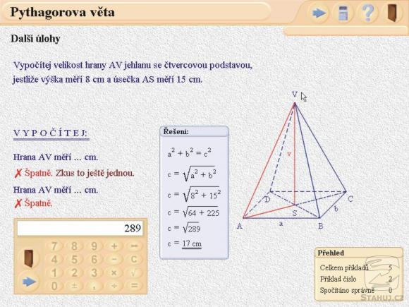 Žák si vybere ročník, kapitolu a cvičení, pak si zvolí počet příkladů. K dispozici má vždy doporučený počet příkladů, navržený s ohledem na obtížnost a časovou náročnost výpočtů. Při řešení příkladů má žák možnost jedné opravy, při druhé chybě mu počítač ukáže správný výsledek, včetně postupu a zdůvodnění výpočtu. Na konci každého cvičení je uveden přehled úspěšnosti a navržena známka. Příklady jsou generovány náhodně, u slovních úloh je zajištěno jejich střídání i střídání zadávaných hodnot. Program obsahuje i kalkulačku, která je aktivní u obtížnějších výpočtů.