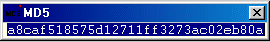 Jednoduchý freewarový program, který vypočítá MD5 hashovací součet daného souboru. Po nainstalování se v kontextové nabídce Exploreru objeví položka MD5 - stisknete pravým tlačítkem na soubor a vyberete onu položku MD5, tím se pošlou potřebné informace do výpočetního programu a zobrazí se výsledek.