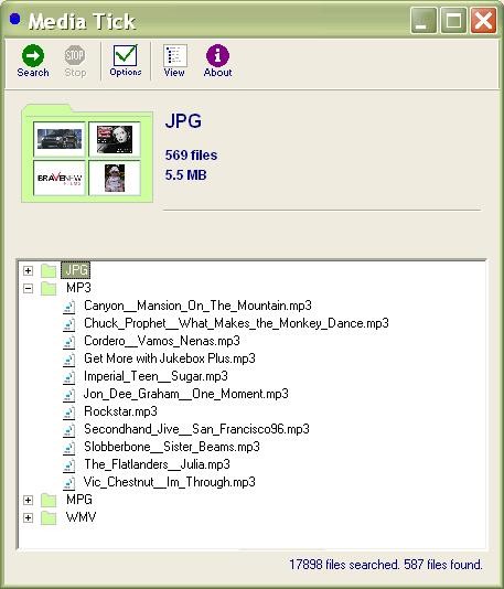S tímto programem můžete snadno a rychle vyhledat jakékoliv multimediální soubory ve vašem pc. Vyhledá i soubory včetně dočasných internetových souborů. Soubory můžete také mazat, přemís?ovat nebo přejmenovávat. Podporuje metodu drag and drop. Podporuje formáty MP3, WMA, WMV, JPG, BMP,MPEG a mnoho dalších.