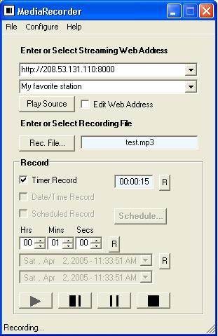 MediaRecorder je šikovný nástroj, který umožňuje zaznamenávat internetové vysílání rádia a televize. Před nahráváním se do programu nastaví výchozí webová adresa, ze které se bude nahrávat, soubor pro uložení vysílání a doba nahrávání. Program má intuitivní uživatelské rozhraní.