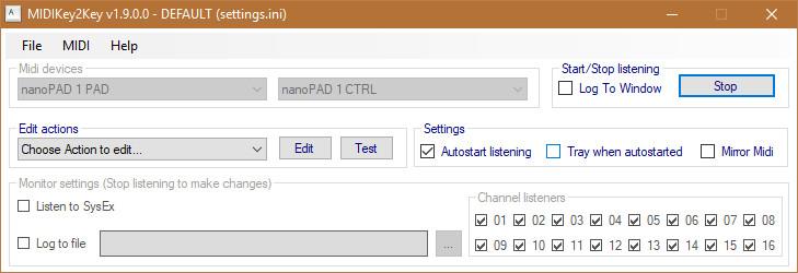 MidiKey2Key je bezplatný program, který umožňuje ovládat počítač pomocí MIDI kláves. Můžete jej použít k ovládání klávesnice počítače, spouštění programů nebo provádění příkazů v příkazové řádce. MidiKey2Key je také schopen posílat a simulovat stisk libovolných kombinací kláves ve formě MIDI příkazů z externího zařízení, jako je MIDI pad. Podporuje použití specifického nastavení (profilů) pro jednotlivé účely a nabízí nástroje pro analyzování MIDI událostí pomocí MIDI-Monitoru.