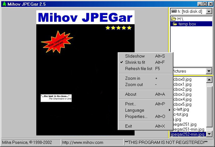 Mihov JPEGar je velmi jednoduchý a snadno použitelný prohlížeč fotografií a obrázků populárních formátů.
