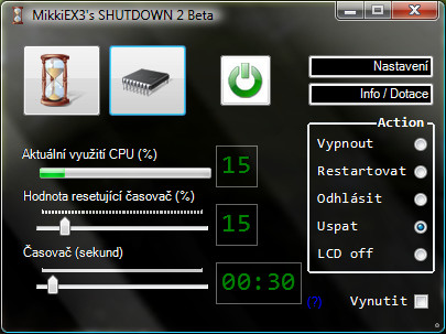 MikkiEX3's Shutdown Beta je bezplatný program, který vám pomůže vypnout počítač podle času nebo využití procesoru.