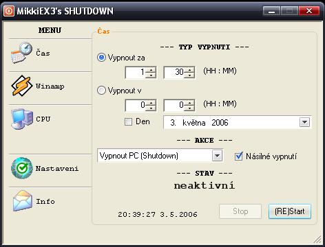 MikkiEX3s SHUTDOWN umožňuje tyto funkce: