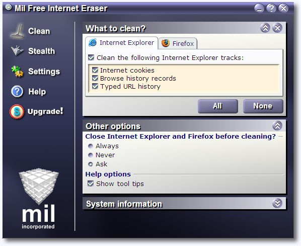Mil Free Internet Eraser je bezplatný nástroj, který vám pomůže ochránit vaše soukromí na internetu. S jeho pomocí můžete snadno a rychle vymazat cookies, historii prohlížení a další osobní údaje, které webové stránky ukládají do vašeho počítače.