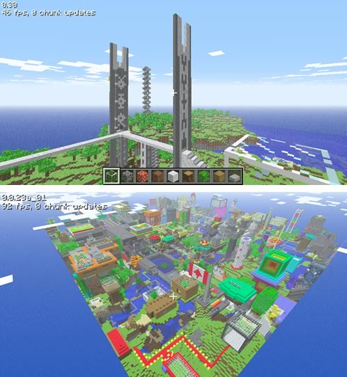 Minecraft je sandboxová hra, ve které máte možnost vytvořit si vlastní svět. Začínáte s prázdnou planinou a k dispozici máte pouze několik stavebních bloků. Z těchto bloků můžete postavit cokoli, co si dokážete představit: domy, mosty, města, celé vesmírné lodě. Hra je omezena pouze vaší fantazií.