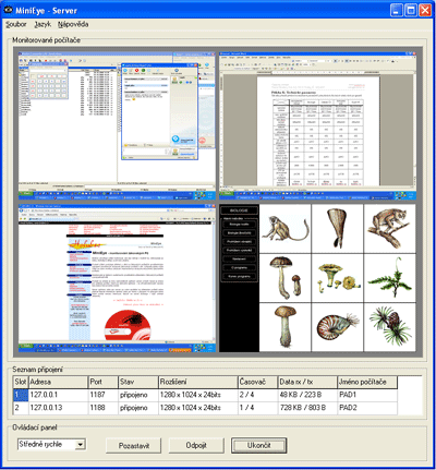 poskytuje přehled o dění na žákovských počítačích prostřednictvím zobrazení zmenšených obrazovek žákovských počítačů v síti. V případě potřeby může učitel na svém monitoru sledovat i nezmenšenou obrazovku libovolného žákovského počítače.