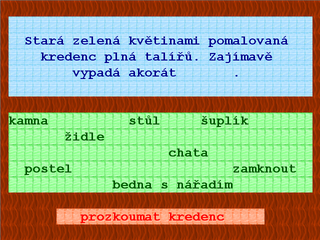 Ve hře Mistr úniků máte za úkol opustit dřevěnou chatrč, ve které se nacházíte. Jenže namísto akcí a předmětů používáte některá slova z příběhu. Takže například hned v úvodním nástřelu příběhu máte řečeno, že by se hodil nějaký ten průzkum. Což je rozhodně fakt. Člověk by měl nejdřív zjistit, kde se vlastně nachází a co by se dalo použít ke splnění úkolu. Takže seberete slovo ‘průzkum’ a uložíte si ho do inventáře společně se slovem ‘chata’. A teď přijde ta nejzajímavější část, která činí tuto hru odlišnou od všech ostatních textovek. Kliknete pravým tlačítkem myši na slovo ‘průzkum’ a změníte ho na akci ‘prozkoumat’. A nyní můžete zkoumat různé předměty.