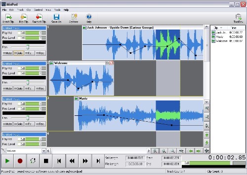 MixPad je skvělý nástroj na mixování MP3 hudby a dalších audio zvukových souborů. Tyto soubory můžete spouštět v určitým čase, nastavit jejich hlasitost a spojit je dohromady. Program nabízí intuitivní a jednoduché grafické prostředí, podporuje formáty wav (kodeky), mp3, vox, gsm, audio soubory a další.