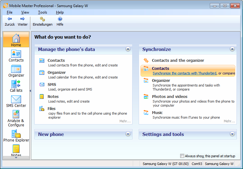 Mobile Master umožňuje synchronizaci dat mezi mobilním telefonem a počítačem.