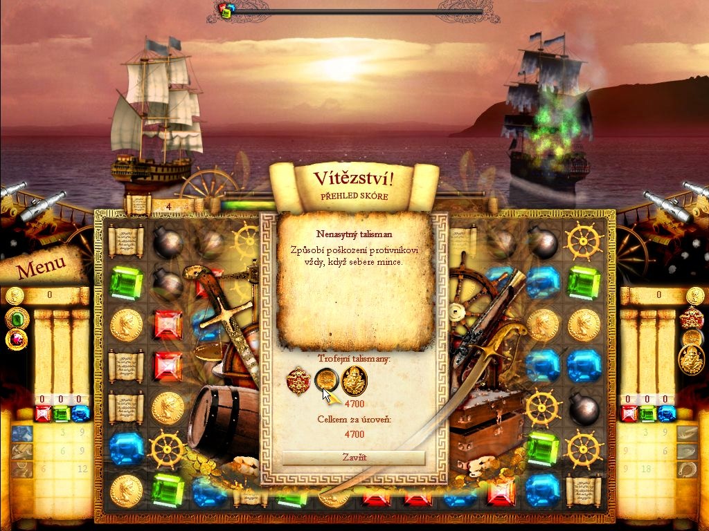 Způsob hry je velmi originální. Herní pole je rozděleno na dvě části: plocha, kde spojujete stejné symboly, a nad ní poutavá námořní bitva. Skládáte stejné kameny do řady, ty vybuchují a samozřejmě mají vliv na bitvu, anebo vám přináší zisk. Řada dělových koulí vypálí salvu na protivníka; kola zvýší manévrovací schopnosti vaší lodi, a tím sníží přesnost nepřátelských střel; různé drahokamy vám poskytnou zvláštní schopnosti; díky mincím si můžete pořídit nové lodě; svitky vám přinesou zkušenost navíc pro vylepšení lodi. Vy a váš protivník máte každé kolo k dispozici tři tahy, ale podaří-li se vám poskládat do řady 4 či 5 kamenů, získáte tahy navíc. Skvělá grafika – různá prostředí, čtyři typy lodí, výborná hudba s reálnými efekty bitvy zaručuje skvělou zábavu .