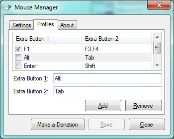 Mouse Manager je jednoduchá aplikace, která umožňuje rychle a snadno nastavit scrollovací kolečko, čtvrté a páté tlačítko myši na jakoukoli klávesu nebo kombinaci kláves, kterou si vyberete.