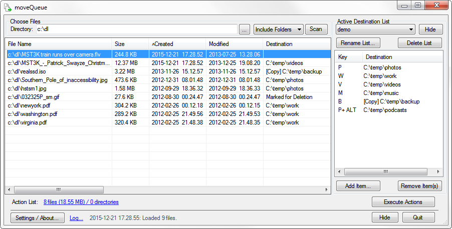 moveQueue je aplikace, která vám usnadní práci se soubory. Umožňuje přesouvat, kopírovat nebo mazat soubory jednotlivými stisky kláves. Stačí předem zvolit, které soubory ze zdrojového umístění mají být přesunuty nebo zkopírovány a určit do jakých složek. Vybrané položky ze zdrojového adresáře je také možné smazat. Díky tomuto programu nemusíte všechny tři akce provádět jednu po druhé, ale zařadit je do fronty.
