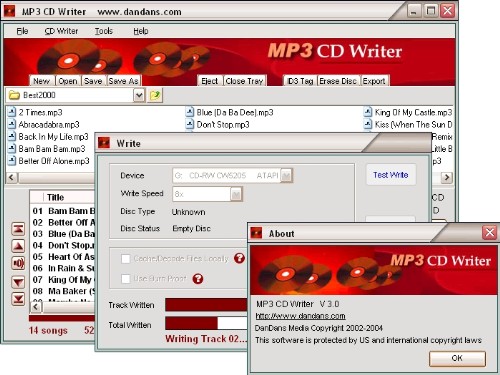 MP3 CD Writer je jednoduchý a rychlý program pro vypalování MP3 CD a audio CD z .mp3 a .wav souborů. Hlavní charakteristika programu: