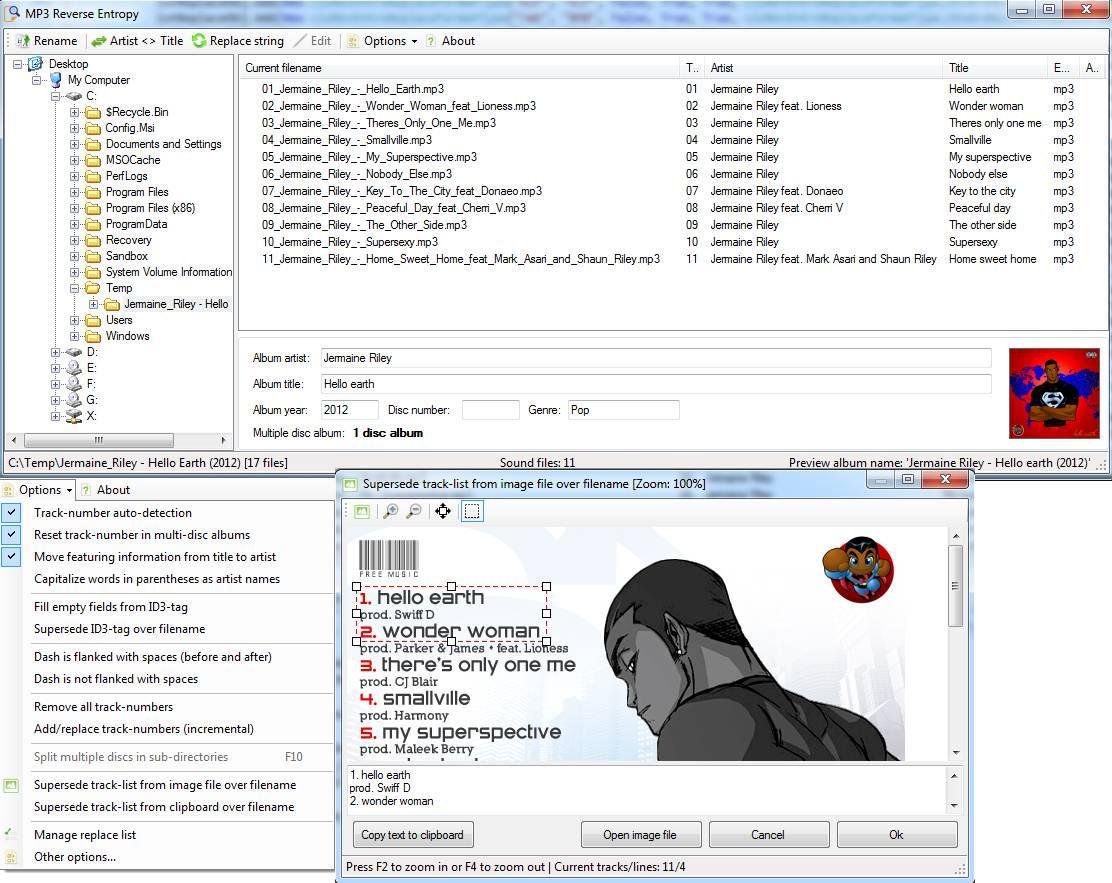 MP3 Reverse Entropy je aplikací pro Ty z Vás, kteří mají ve stažených albech výstupní nejednoznačné názvy mp3 souborů. MRE vrací název souboru Vašim mp3 souborům.