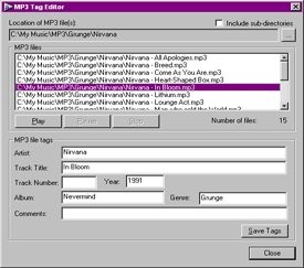 MP3 Tag Editor je nástroj pro Windows, který umožňuje uživateli editovat tag informace v Mp3 hudebních souborech, jako je název kapely, jméno, název alba, názvy písniček, rok vydání, styl atd. Tento editor nabízí jednoduché ovládání a umožňuje přehrávání Mp3 souborů.