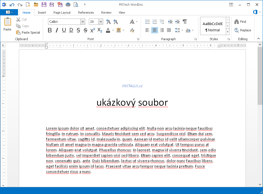 MSTech Office Home obsahuje alternativní textový editor, tabulkový editor a prohlížeč PDF souborů. Je kompatibilní s Word dokumenty .doc, .docx, .odt, .epub, .txt a jiných, tabulkový editor také zvládá otevřít formáty .xls, .xlsx, .csv, .txt a dalších. Prostředí je podobné balíku Office 2019, obsahuje však minimum funkcí a balík je vhodný např. pro domácí používání nebo omezené firemní.