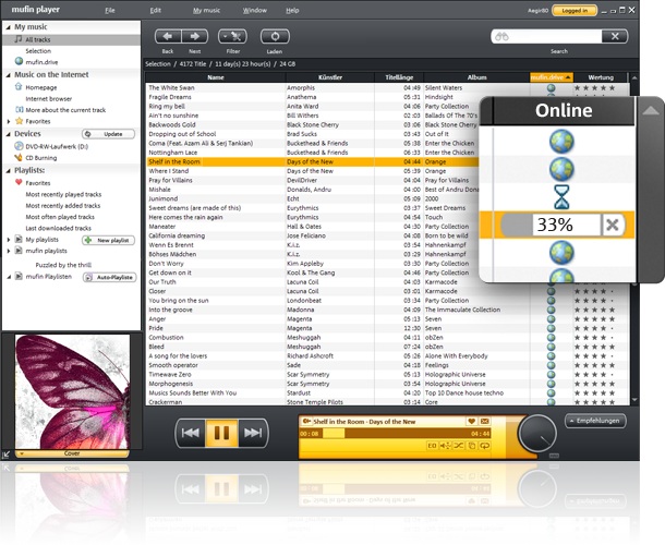 mufin player je freewarový hudební přehrávač umožňující poslech oblíbené hudby a také správu vaši hudební sbírky.