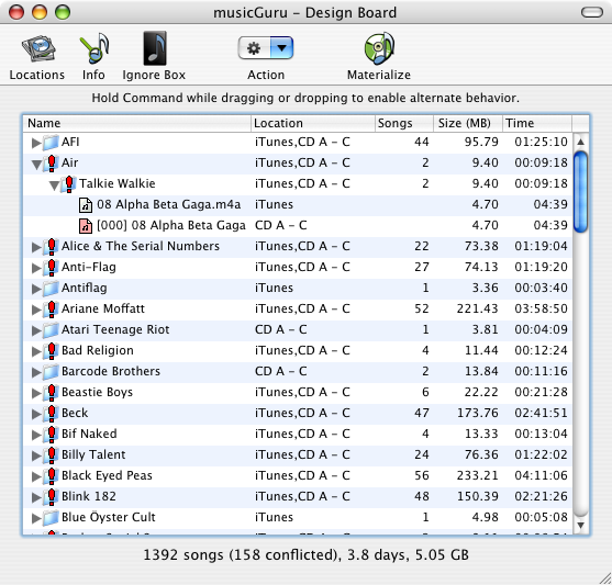 musicGuru slouží pro organizaci hudby. S programem můžete hudební soubory přejmenovávat, přesouvat, kopírovat a zaznamenávat vaše songy na Cd.