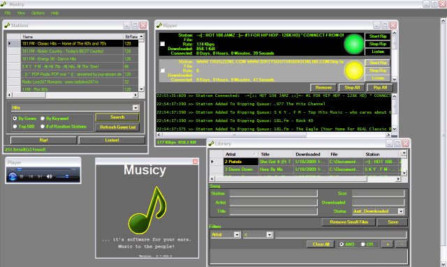 Musicy je to nástroj, který umožňuje vyhledávání, přehrávání a stažení internetových rozhlasových stanic do mp3 souborů. Podporuje stažení více souborů najednou a spravuje vaši nově staženou hudbu!