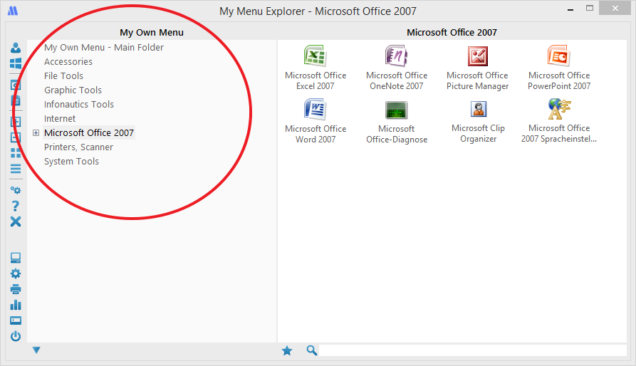 My Menu Explorer je nástroj pro tvorbu personalizovaných menu nabídek s vlastními oblíbenými zkratkami pro snadný přístup k aplikacím, dokumentům, složkám nebo webovým stránkám. Zkratky lze kategorizovat a organizovat ve formě stromové struktury. Program podporuje jednoduché přetahování zkratek z jedné skupiny do druhé a také obsahuje jednoduché vyhledávání.