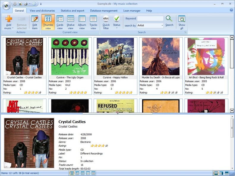 My Music Collection je komplexní software na organizování a správu hudební kolekce různých typů - hudba na CD, MP3 soubory, nebo vinylové nahrávky. Tento hudební organizér umožňuje vytvořit přehlednou databázi vaši hudební sbírky.
