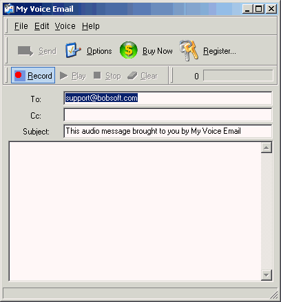 My Voice Email je moderní nástroj, který umí zaznamenat a poslat audio zprávu místo klasického emailu. Pomocí kliknutí stačí nahrát váš vzkaz a poslat. Vaše zvuková audio zpráva se komprimuje do mp3 formátu - pro zmenšení velikosti, bez ztráty kvality. Není třeba posílat různé emotikony, vše vyjádříte vašim hlasem! Délka hlasové zprávy je neomezená.Voice Email je samostatná aplikace a nevyžaduje žádného dalšího e-mailového klienta.